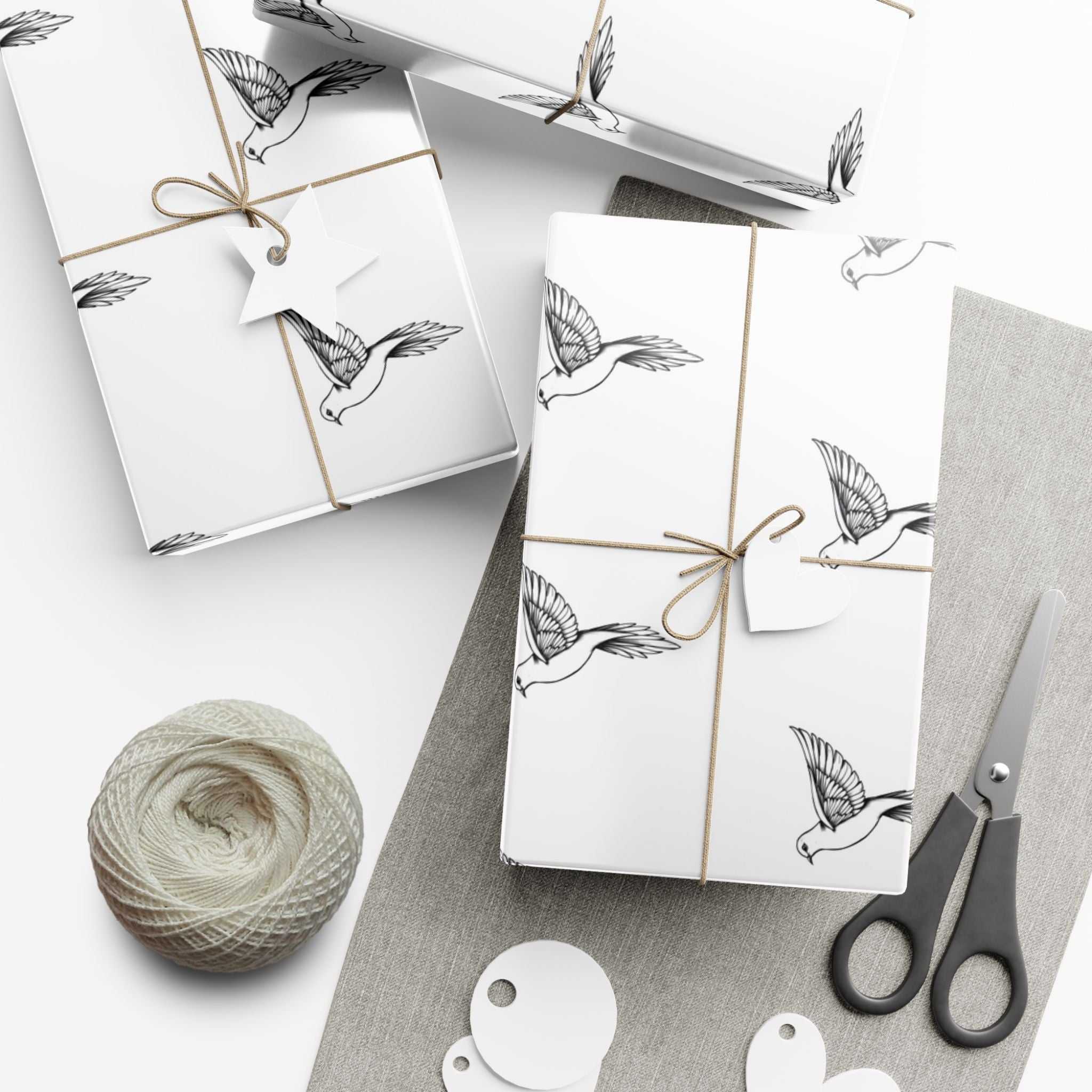 A roll of dove-pattern gift wrap that brings quiet elegance to wrapped moments. Each sheet shows minimalist flying doves in crisp detail, letting the gesture of giving speak before the ribbon is tied. The finish options — satiny sheen or refined matte — deliver either a soft glow or understated texture. Colors stay true and bright thanks to water-based, Greenguard-certified inks, and the sturdy paper stands up to careful handling without tearing or cracking along folds. Use it for wedding parcels, baby shower bundles, or birthday surprises when you want the presentation to feel thoughtful and calm rather than loud. The responsibly printable, recyclable paper and U.S. assembly add a careful, considered touch to every wrapped gift.