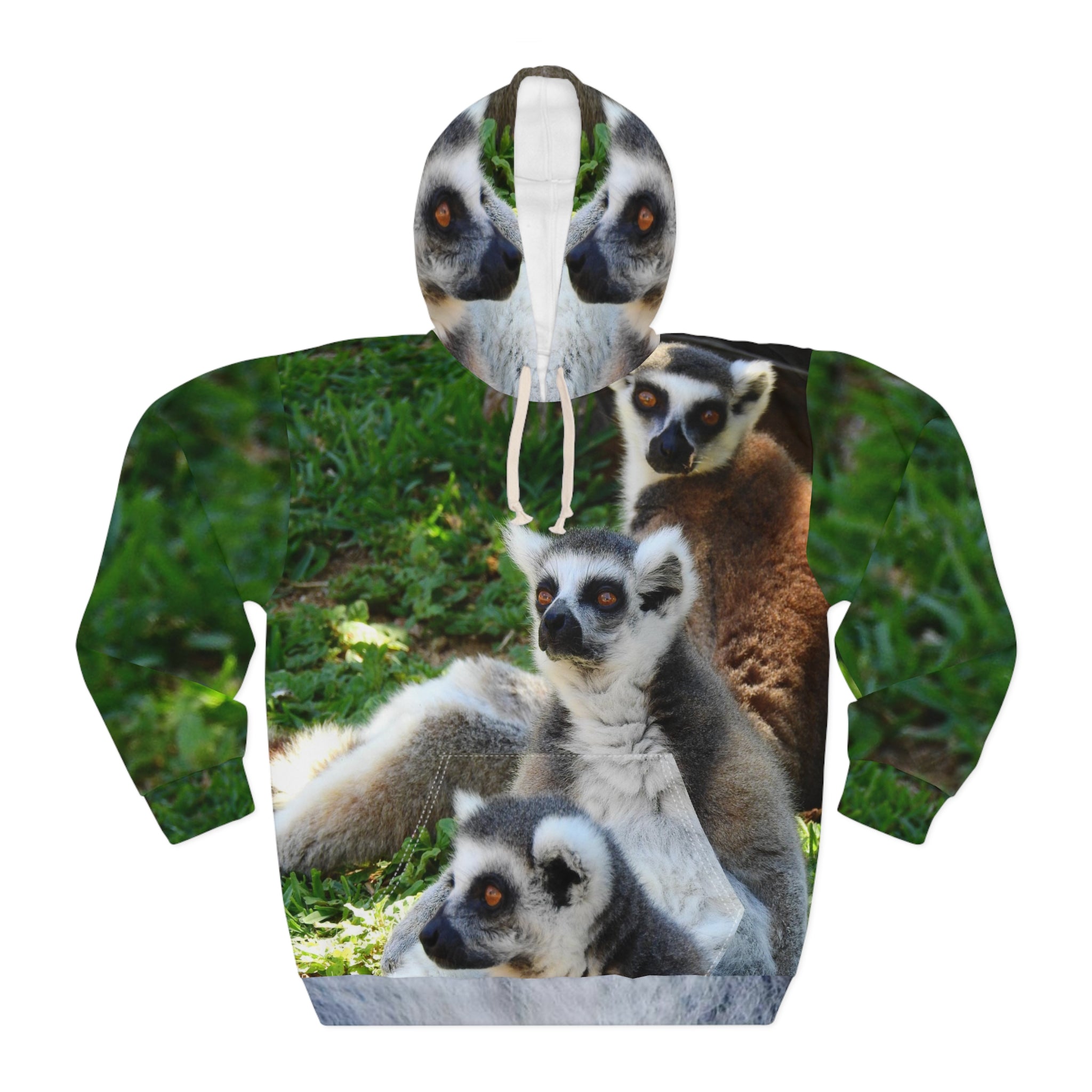Show your love of Nature with this Lemur Pullover Hoodie. It features a large front pocket, hood with drawstring, and is custom cut and sewn.